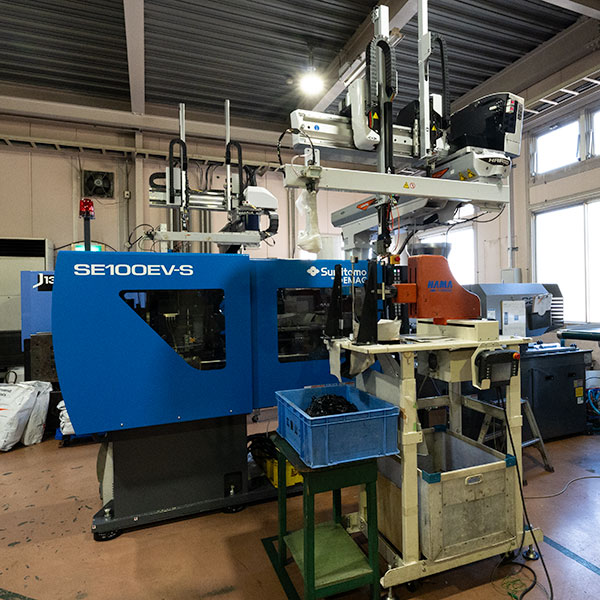 広島山大の設備はプラスチックの射出成形に欠かせない成型機をはじめ、測定器や加締機なども時代に合わせた更新を行なっています。